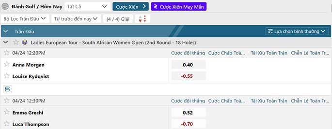 Tương tự như các môn thể thao khác, mỗi trận Golf diễn ra luôn đi kèm với bảng kèo cược và nhà cái lên kèo tầm 2 đến 3 ngày trước khi trận đấu bắt đầu.